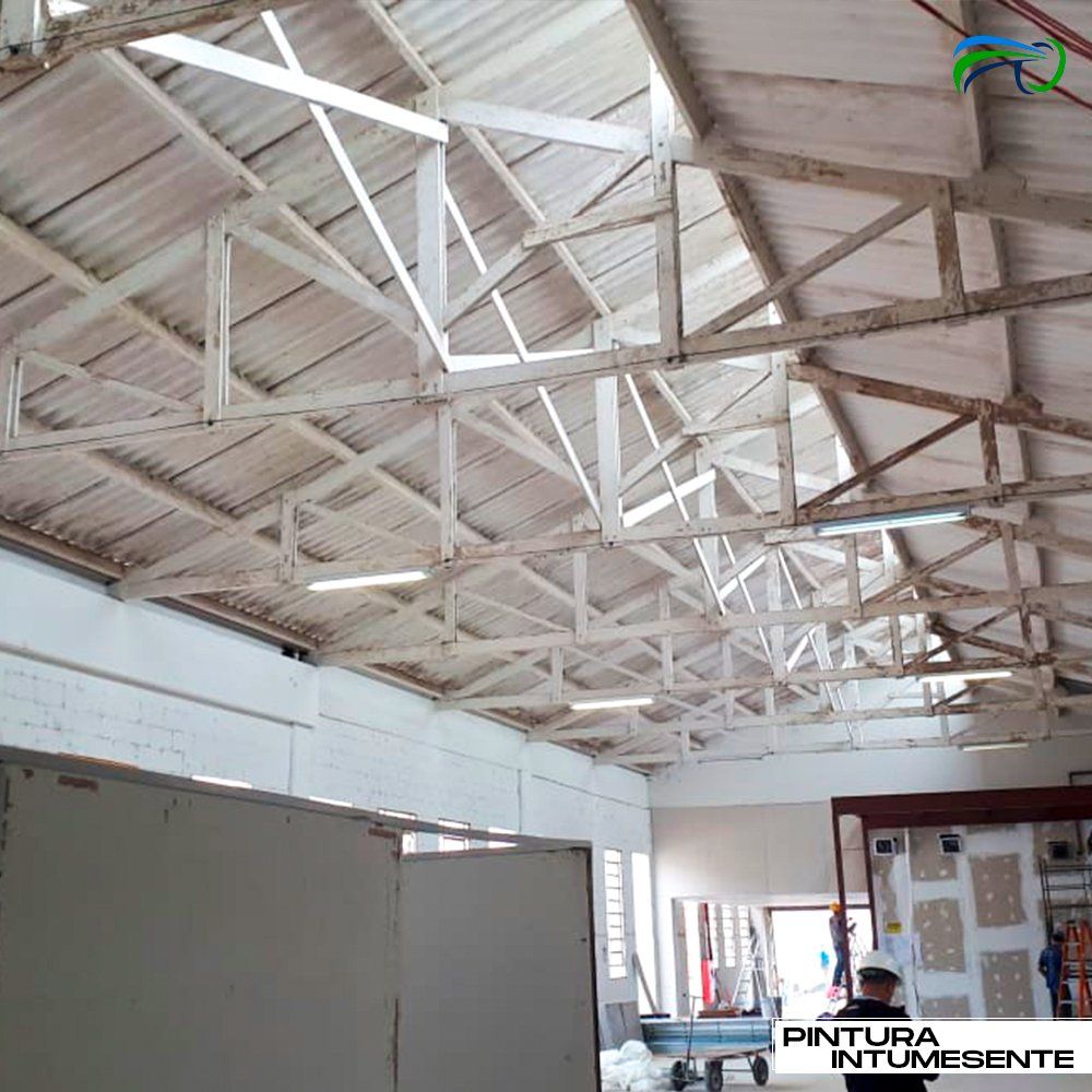 Pintura Intumescente a base de agua, destinado à proteção contra incêndio de estruturas metálicas em áreas internas e externas para resistir ao fogo por até 120 minutos, conforme especificação do projeto.
